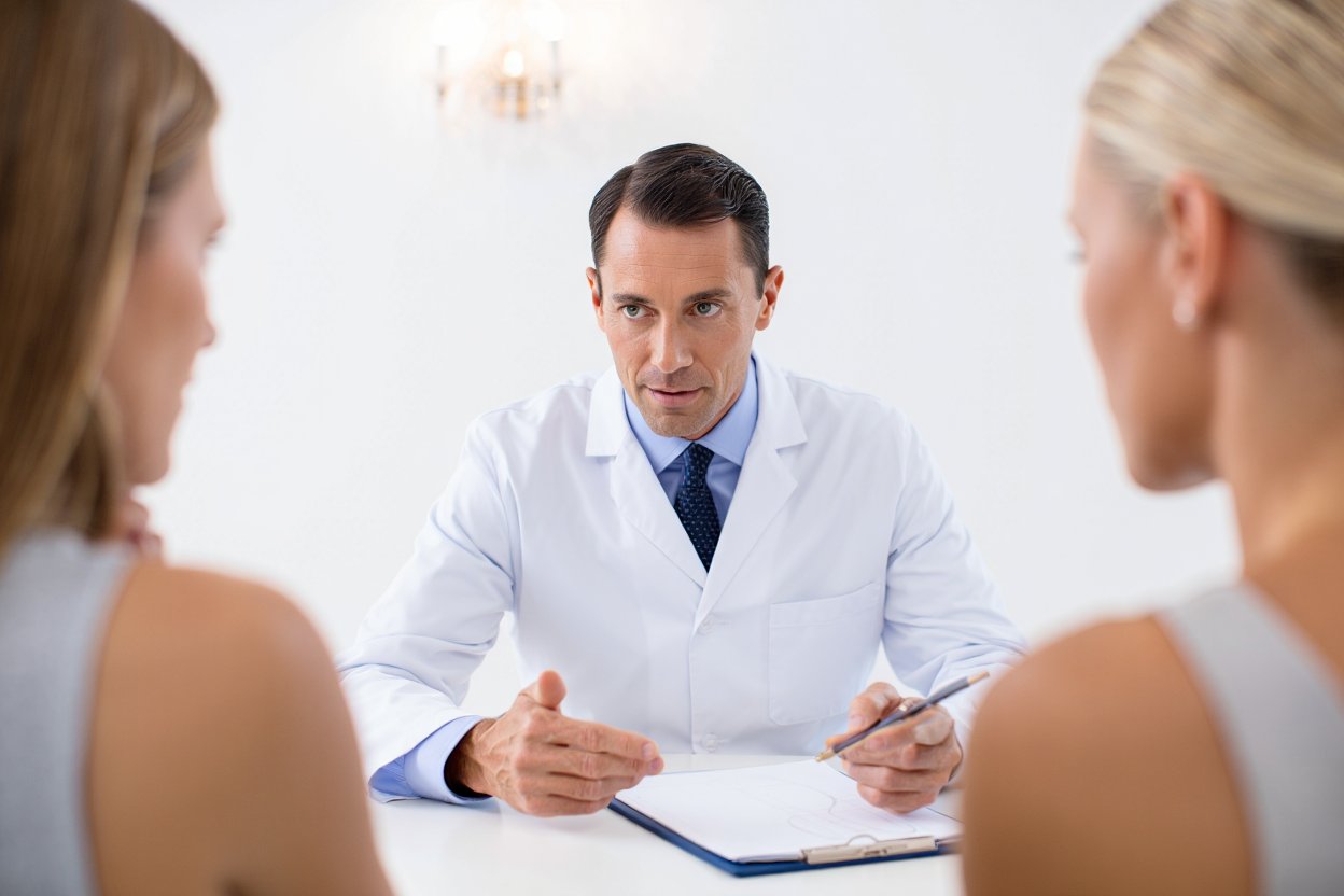 Доктор заполняет договор. При желании клиента предоставляются лицензия центра, документы доктора.